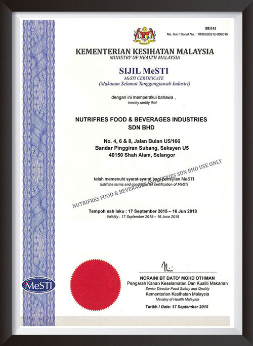 Nutrifres | Our Certificates
