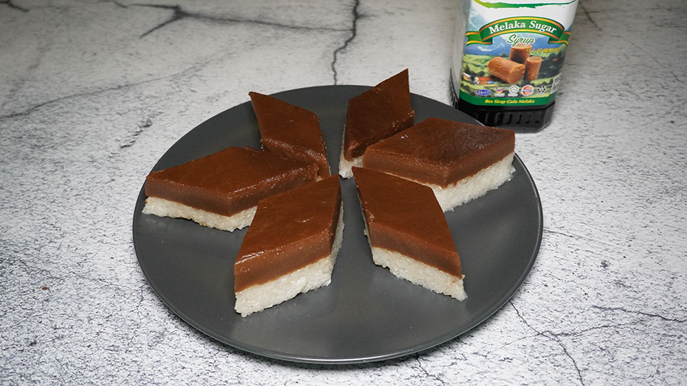Ingredient B 1 cups of Melaka Sugar Syrup NUTRIFRES 1 cups of coconut milk 1/2 cups of water 1 cups of wheat flour 1 tablespoons of potato flour A little salt